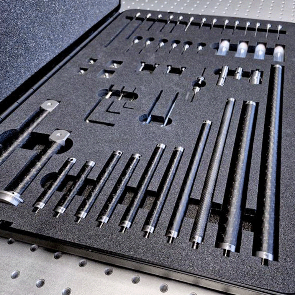 Taster Set M5 für Zeiss Vast XT, 55-teilig 55-teiliges Taster-Set M5 für Zeiss Vast XT. Das Set mit der Grundausstattung umfasst eine Auswahl gängiger Taster mit ultraleichten CFK- sowie bewährten Hartmetallschäften. Zur Auswahl stehen Taster mit Rubin- und Siliziumnitridkugeln. Ergänzt wird das Set durch verschiedene Verbindungskomponenten und Verlängerungen aus High-End-Kohlefaser sowie einen Werkzeugsatz.